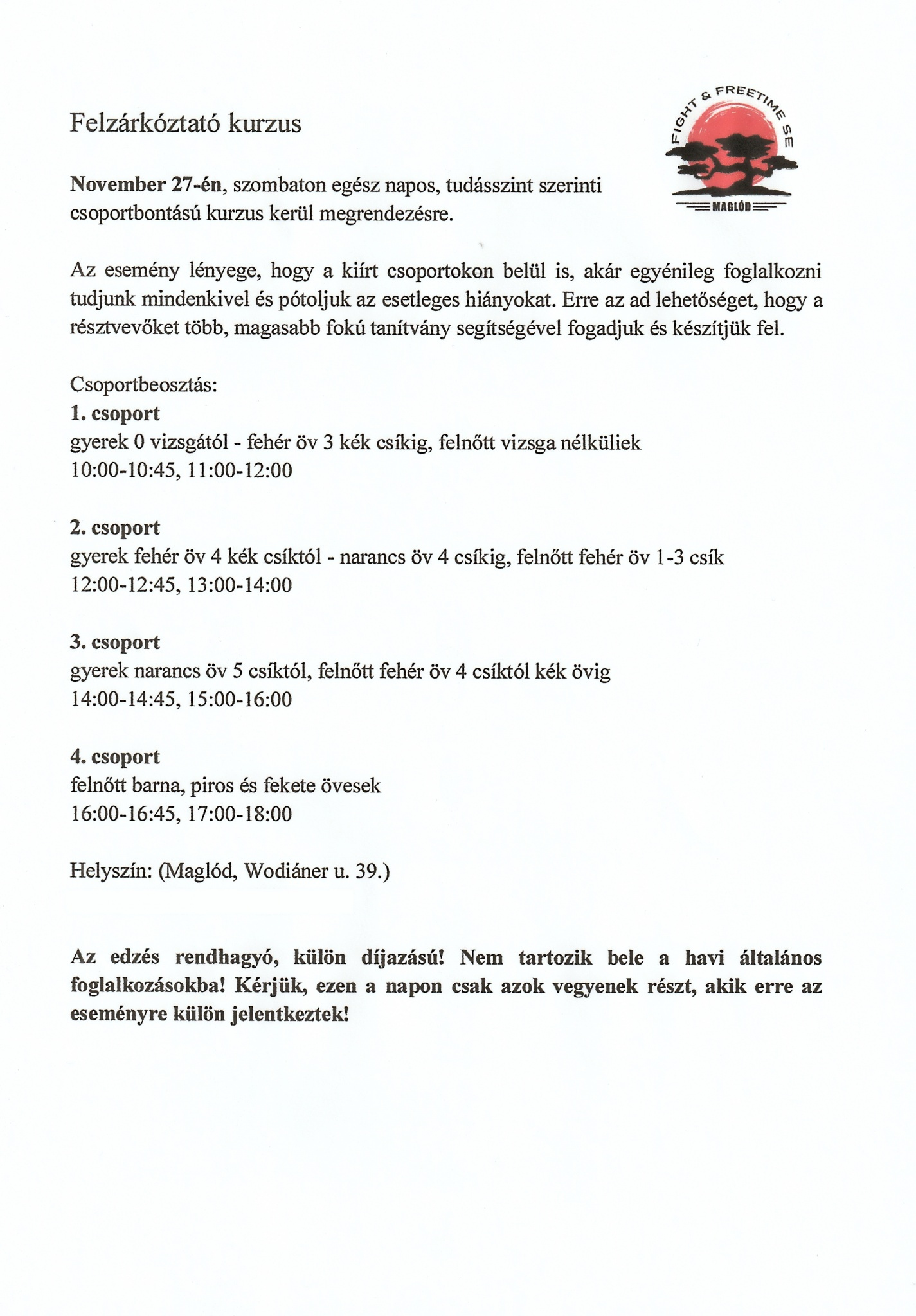 November 27-én, szombaton egész napos, tudásszint szerinti csoportbontású kurzus kerül megrendezésre.